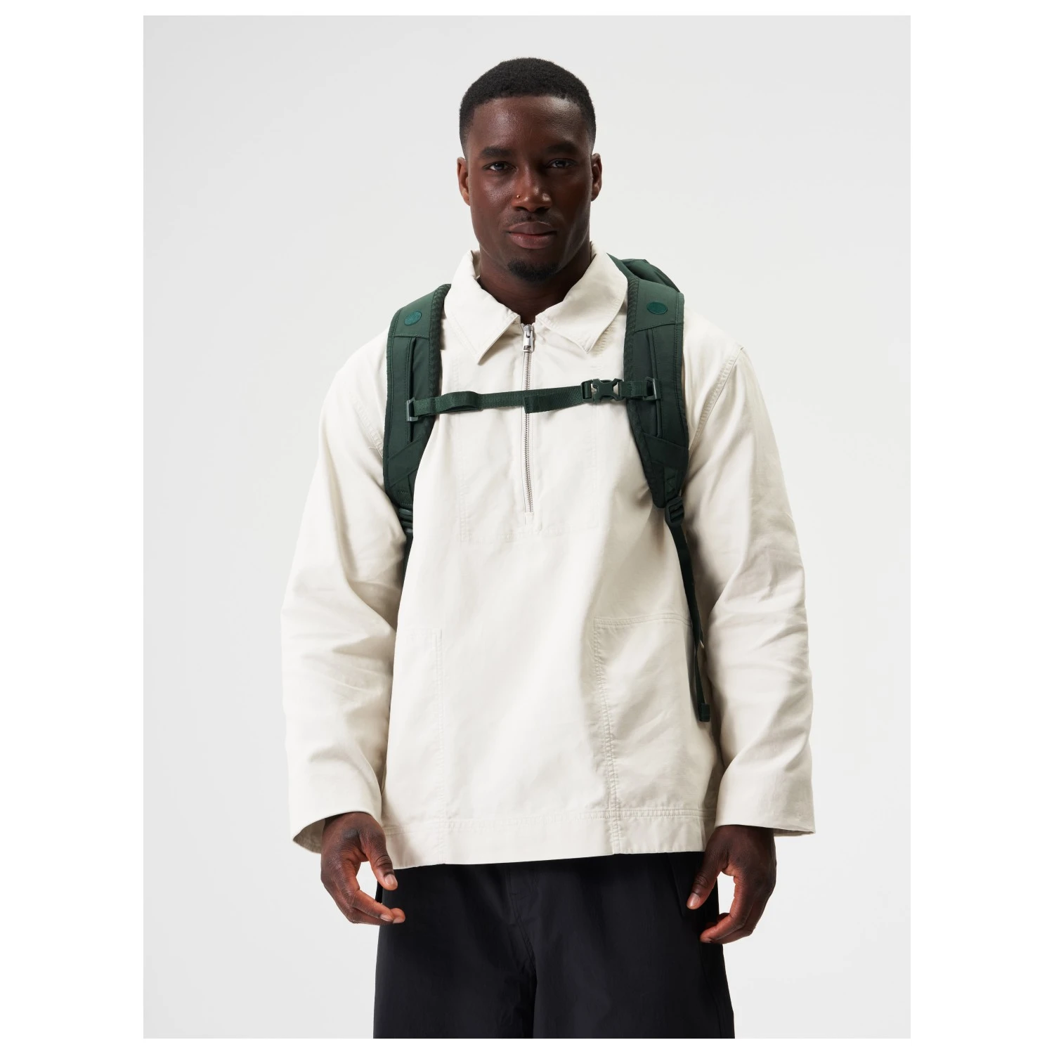 Ein weiteres Highlight des Rucksacks ist das nachhaltige Material aus dem er hergestellt ist. Es handelt sich dabei um festen und strapazierfähigen Stoff, der aus recycelten PET-Flaschen hergestellt wird. Er hat eine wasserbasierende PU-Beschichtung und ist mit einer PFC-freien, wasser- und schmutzabweisenden Lösung behandelt. Außerdem ist das Material vegan.