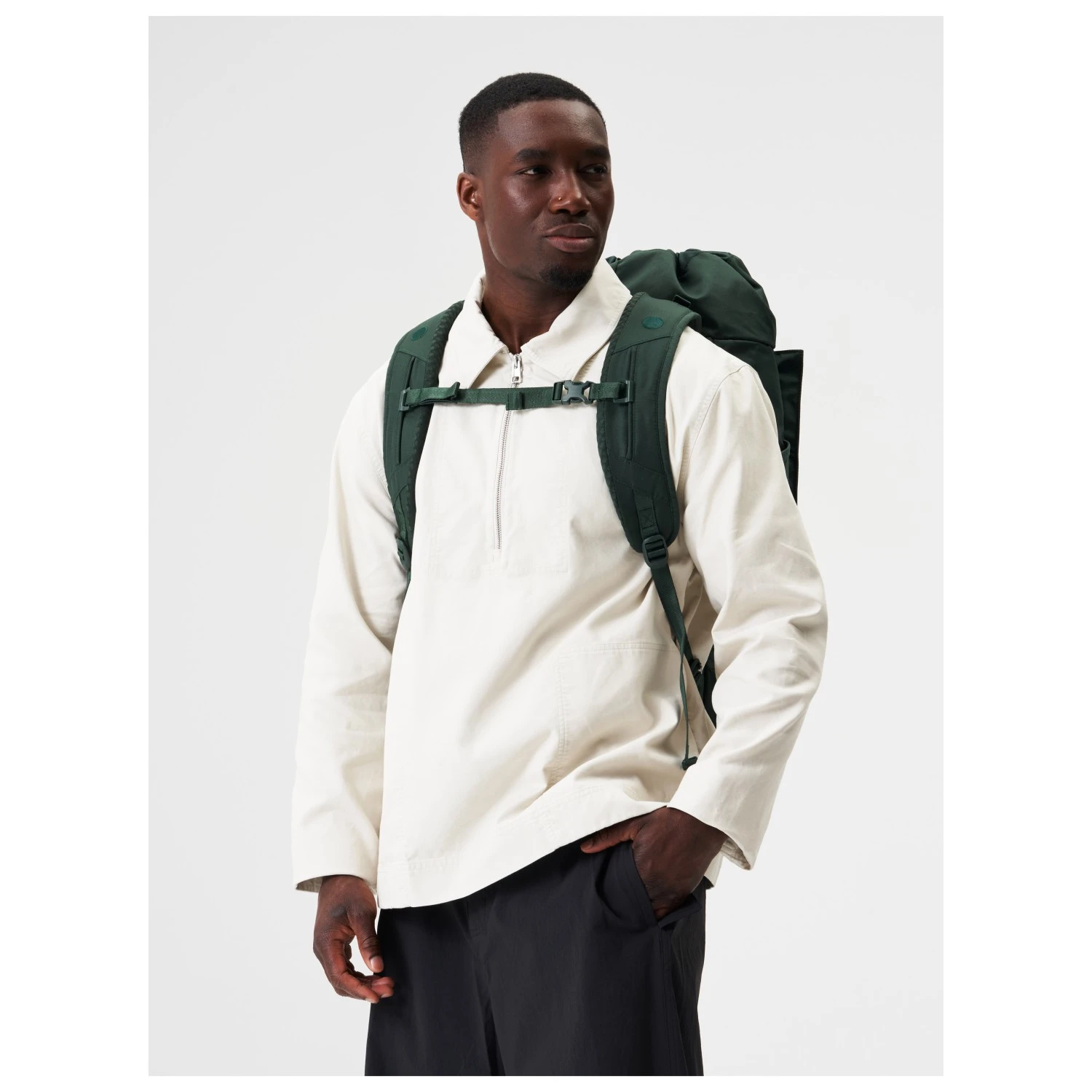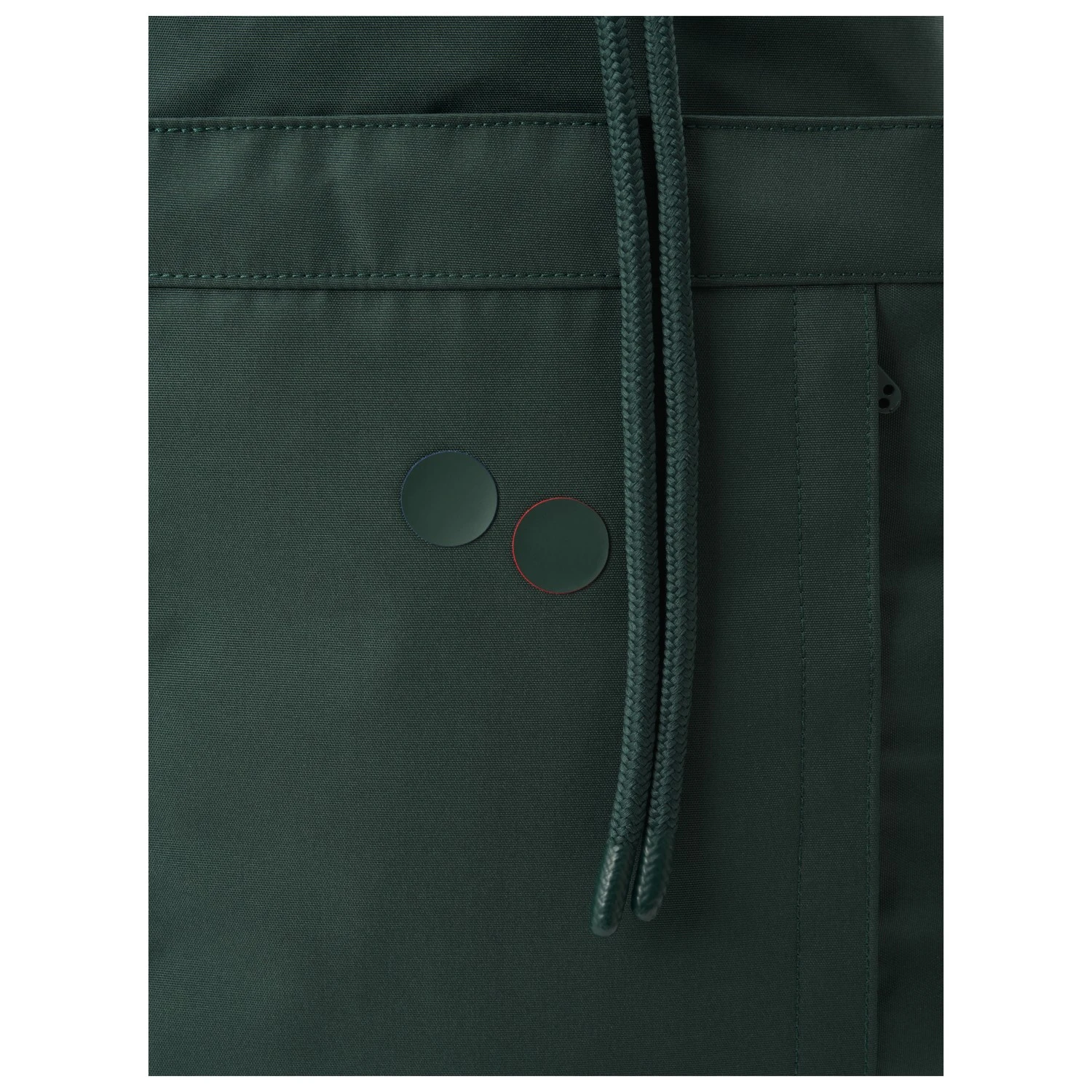 Ein weiteres Highlight des Rucksacks ist das nachhaltige Material aus dem er hergestellt ist. Es handelt sich dabei um festen und strapazierfähigen Stoff, der aus recycelten PET-Flaschen hergestellt wird. Er hat eine wasserbasierende PU-Beschichtung und ist mit einer PFC-freien, wasser- und schmutzabweisenden Lösung behandelt. Außerdem ist das Material vegan.