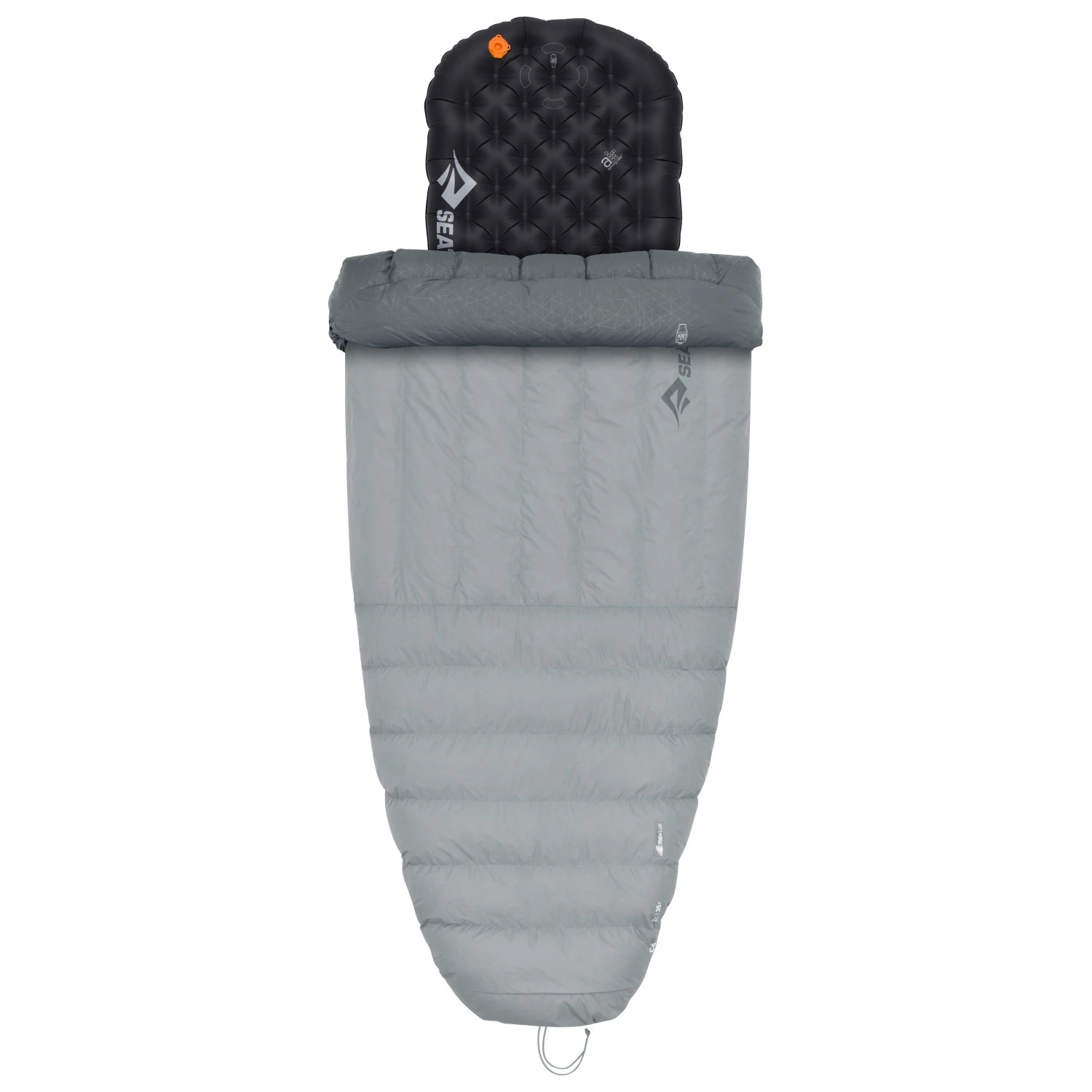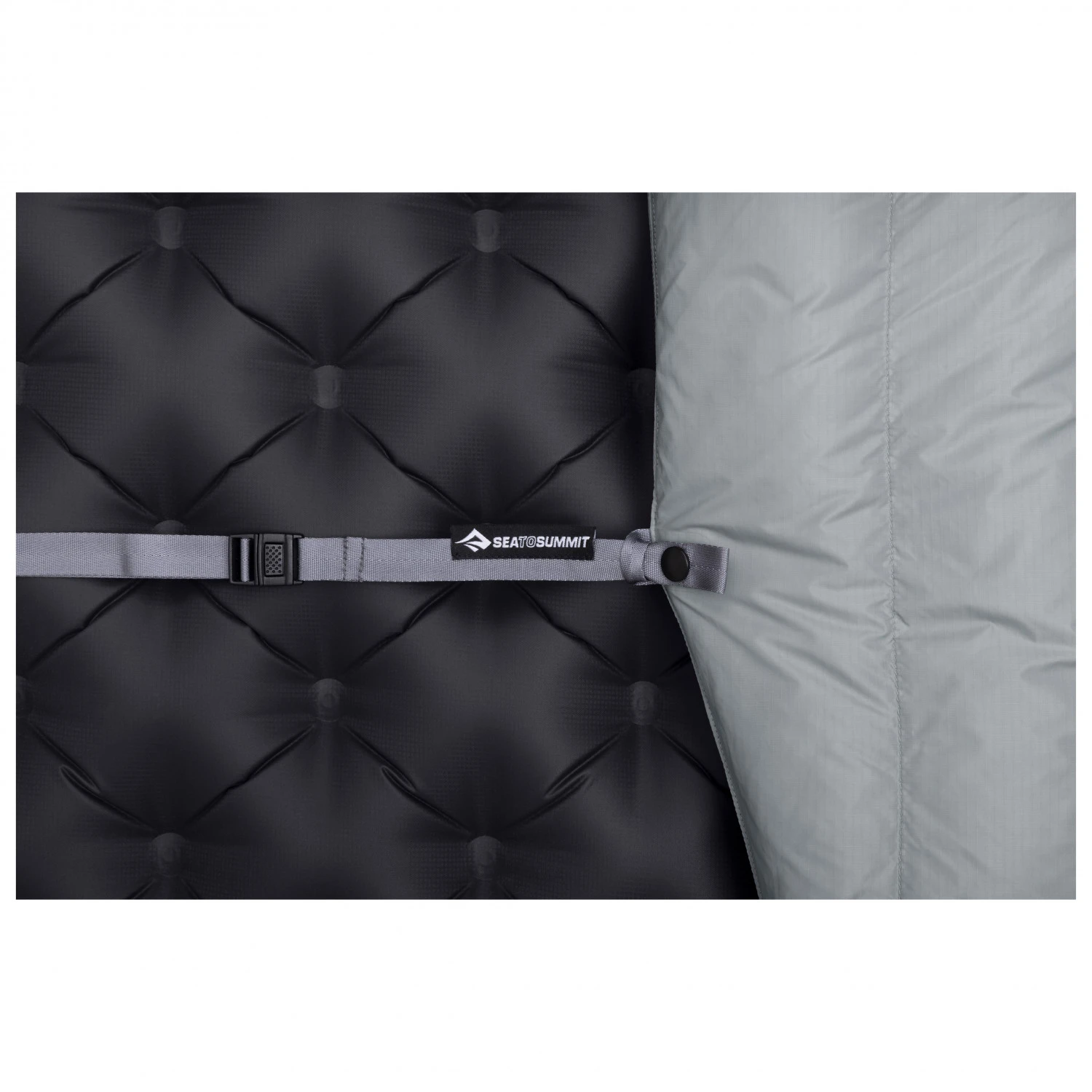 Der Brustbereich ist mit vertikalen Daunenkammern versehen und der untere Bereich mit horizontalen Kammern. Kältebrücken werden effektiv vermieden. Die Daunenfüllung isoliert zuverlässig. Mit den Gurten lässt sich die Decke sicher an der Matte befestigen. Ein erholsamer Schlaf ist damit garantiert!